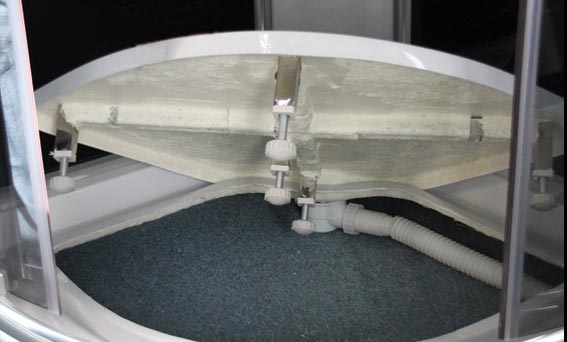 Several of our shower enclosures are made with a 2-part bottom. This construction makes it easy and effortless to clean the drain. By lifting the center section, you have unhindered access to the drain cup, without first having to move the cabin. For all cabins the cabin bottoms are stiffened with an extra layer of strong fiberglass and a stand with many supporting points, providing a good, stable bottom. The double-bottom solution should not be chosen if the drain is not under the cabin or in combination with a drain pump. In this case, Nordkap Living recommend the single bottom option, which is standard in most shower cabins.