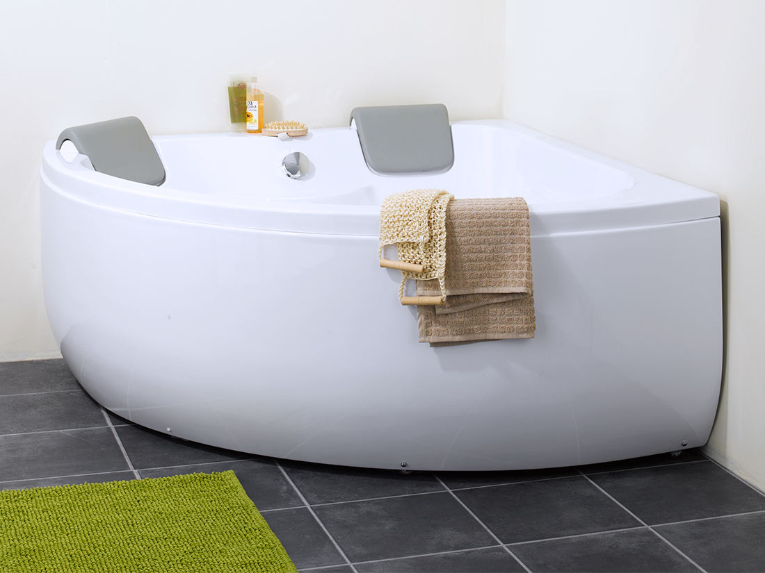 - Indbyggede armlæn og nakkestøtter – For øget komfort under badet.