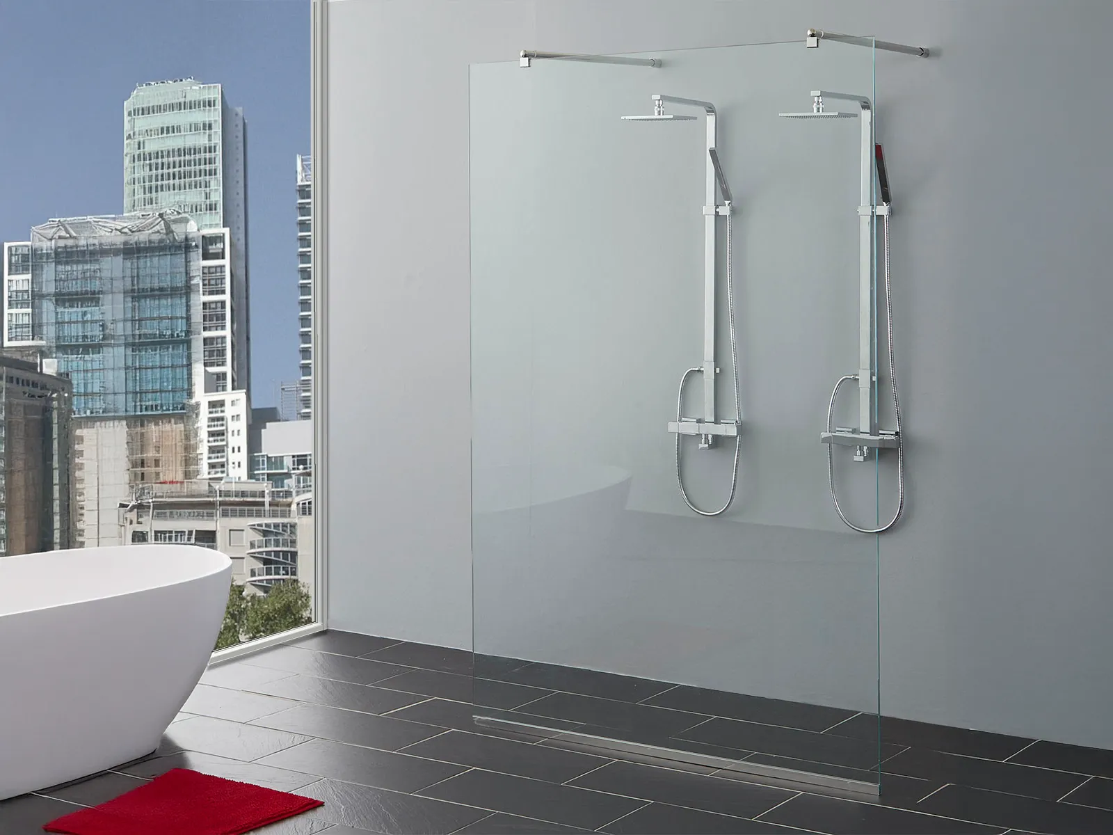 - Klar brusevæg – Ideel til dig, der ønsker et åbent og gennemsigtigt look.