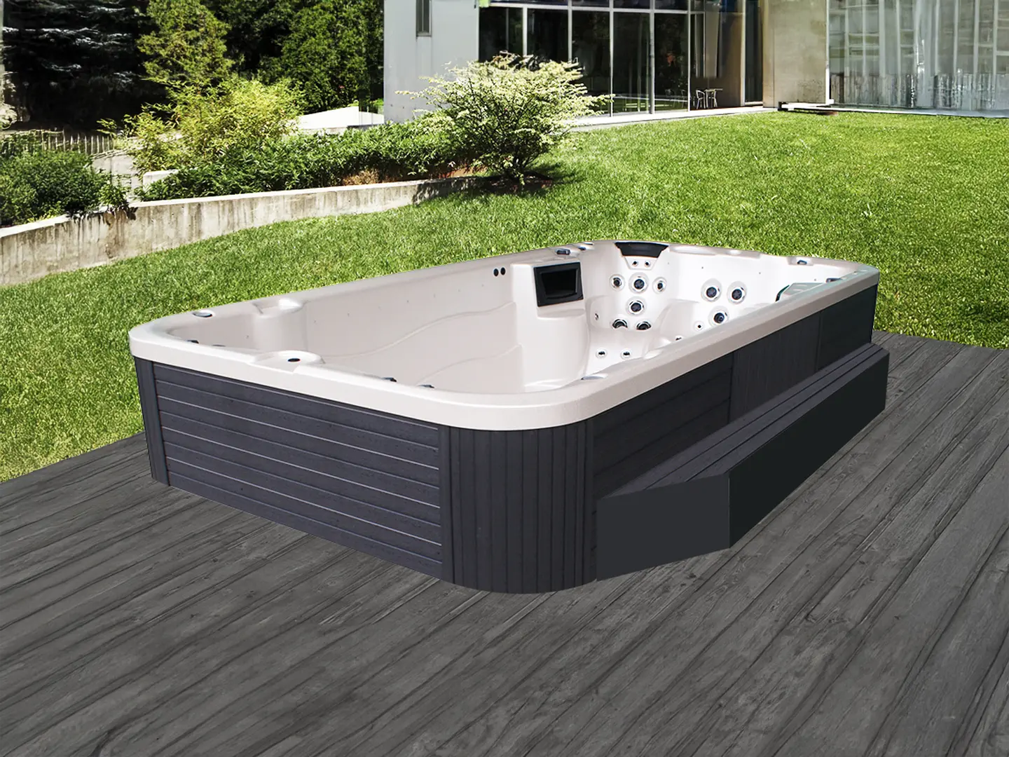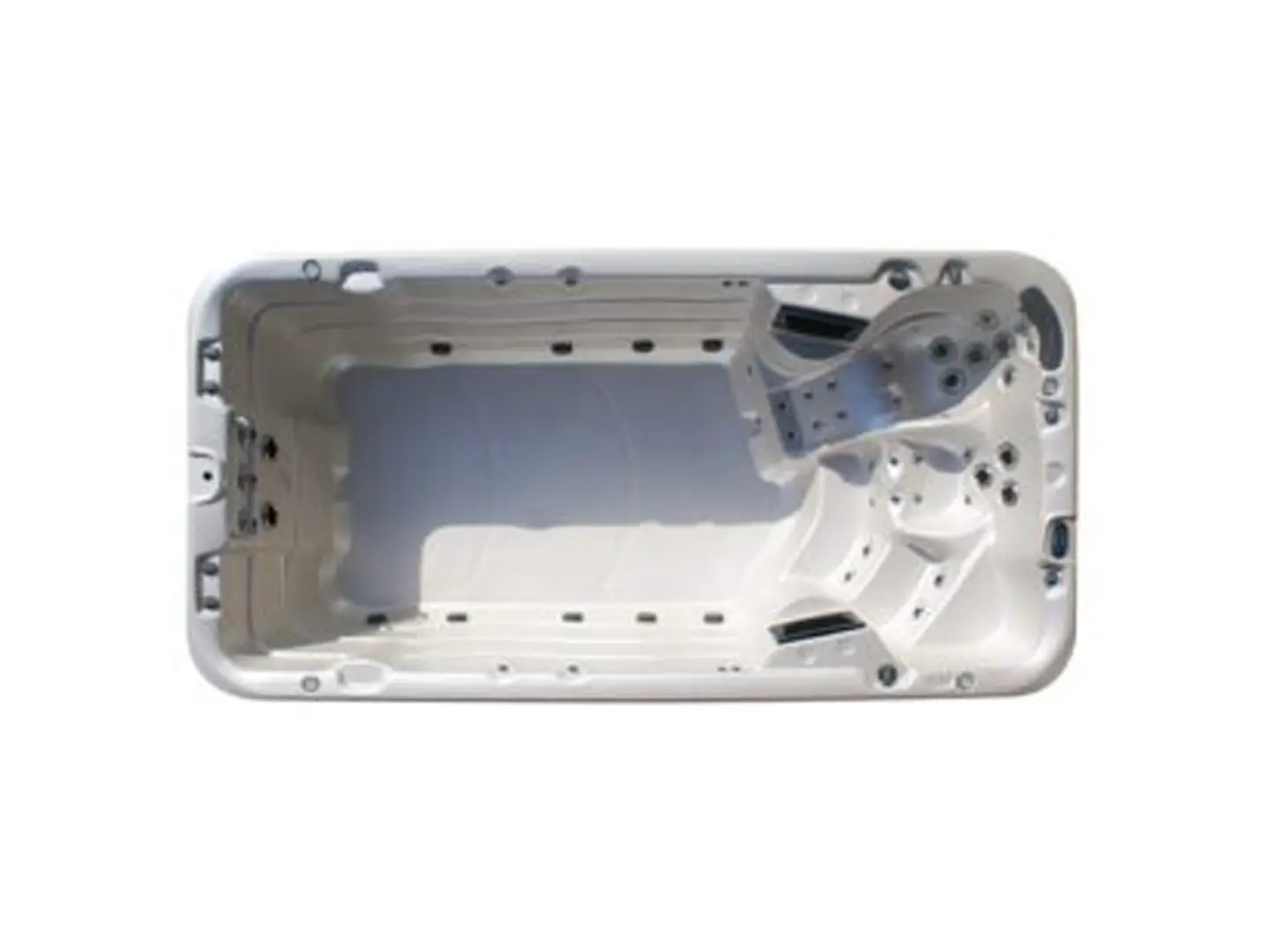 Arena Swimspa forener svømmetræning og wellness i ét elegant design. Med 57 massage- og luftdyser, 1 liggeplads, 1 siddeplads og et integreret barnesæde skaber den plads til hele familien. Oplev følelsen af uendelige svømmetag og total afslapning – direkte i din egen have.