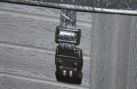 Coveret er ekstra tyk og er med til at holde på varmen i karret, især når det er fastgjort med de medfølgende klips, der også fastholder coveret i blæsevejr. Klipsene er forsynet med cifferlås.