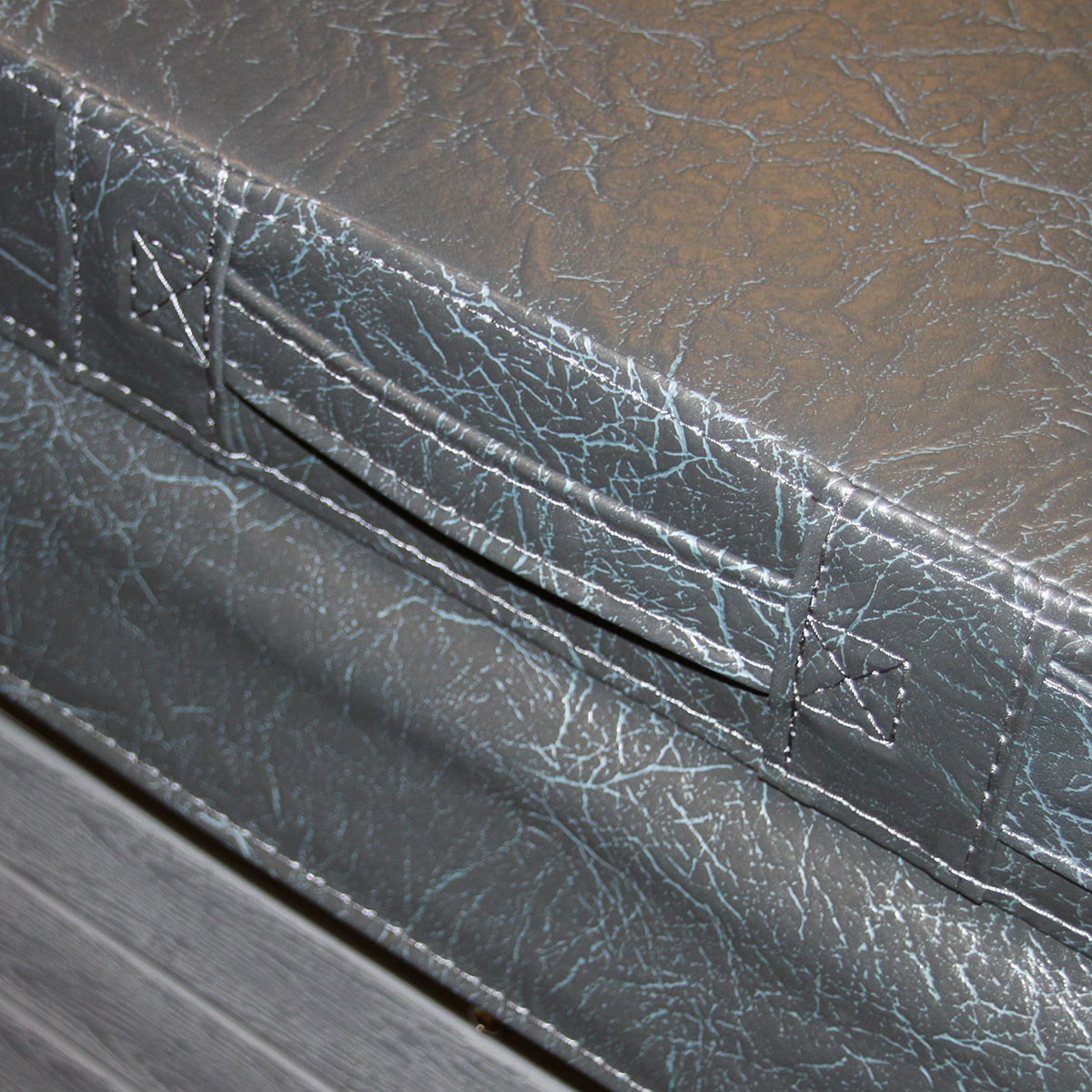 Cover med stærk læderlignende vinylbetræk. Indsyede håndtag på to sider.