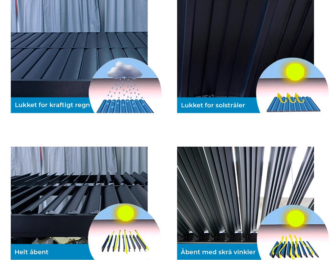 Pavillon til dit udendørs wellnessområde. Fremstillet i 3 x 3 meter i aluminium og vejrbestandige materialer.