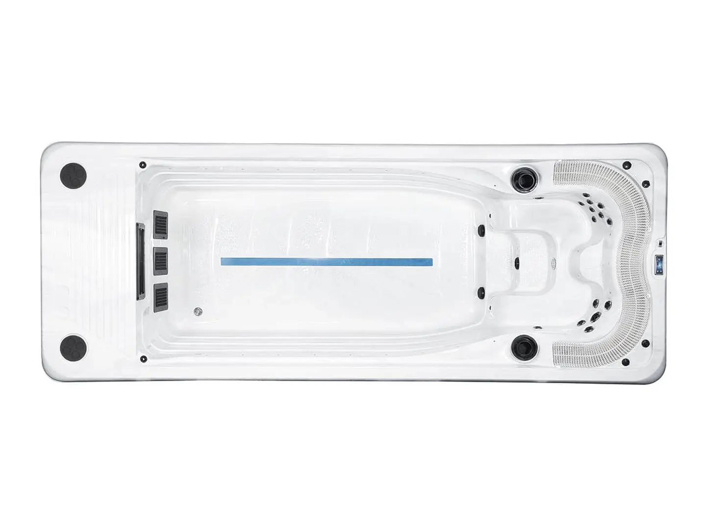 Når træningen er overstået, kan du synke ned i det luksuriøse spaområde og nyde en dybdegående vandmassage i de ergonomisk designede spasæder. River Flow 1 giver dig et fristed for både krop og sind, hvor du kan genoplade dine kræfter og finde din indre balance – det perfekte produkt til både fysisk og mental sundhed.