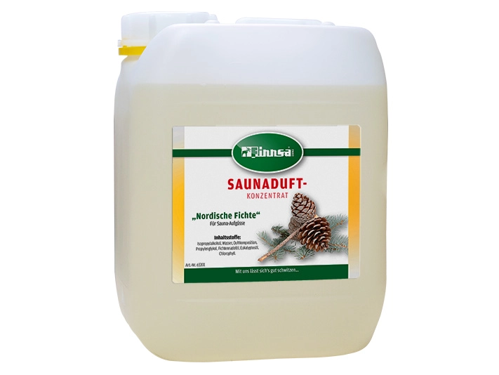 Saunaduft Nordisk Gran 5 l. Duft af rustik stivelse, skovfriskhed, forfriskende. Økonomisk brug – du behøver kun ca. 5 ml pr. 1 liter vand.