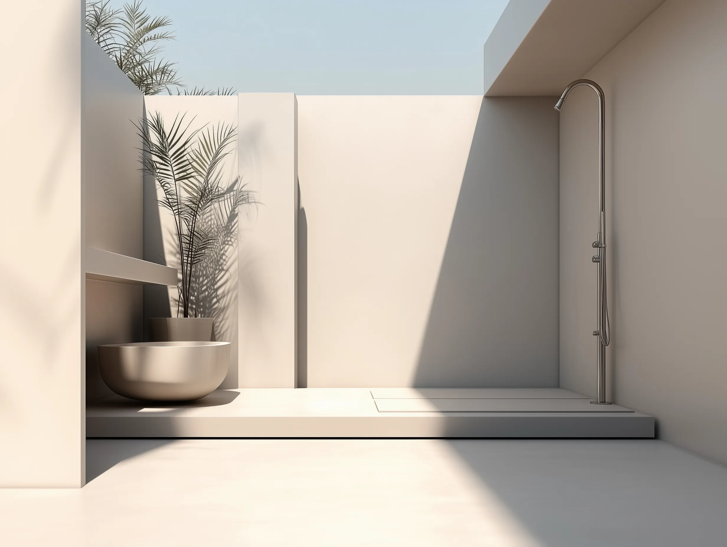 - Udendørs brusesystem – En mere avanceret løsning med blandingsbatteri og justerbar vandstrøm.