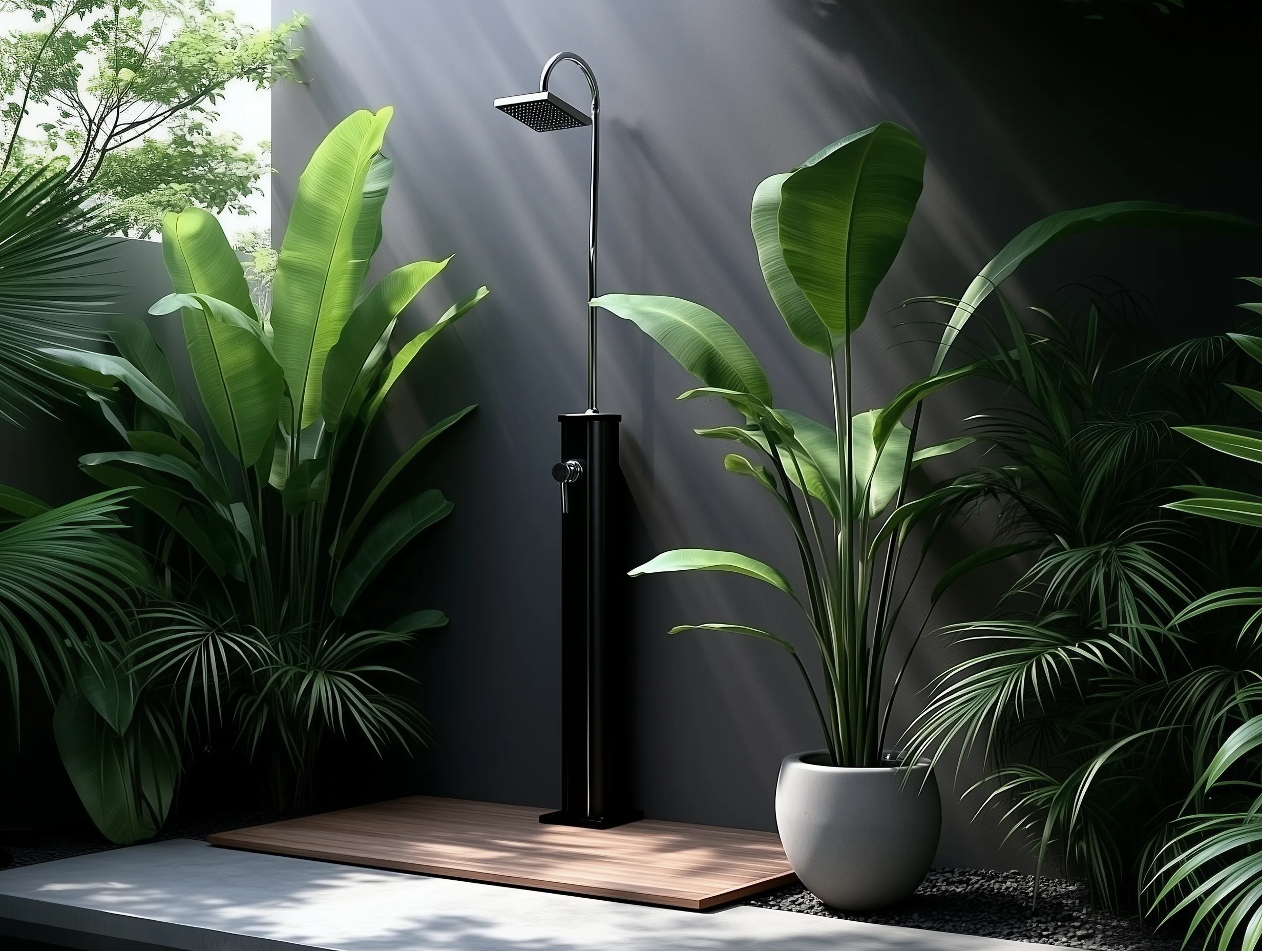 Forestil dig en varm sommerdag, hvor solen står højt på himlen. Du har tilbragt timer på terrassen eller i haven, og nu trænger du til en forfriskende afkøling. Du træder hen til din elegante udebruser, tænder for vandet og lader den bløde stråle skylle varmen af dig. Med en udendørs bruser kan du skabe din egen wellness-oase i haven, på terrassen eller ved poolen.
